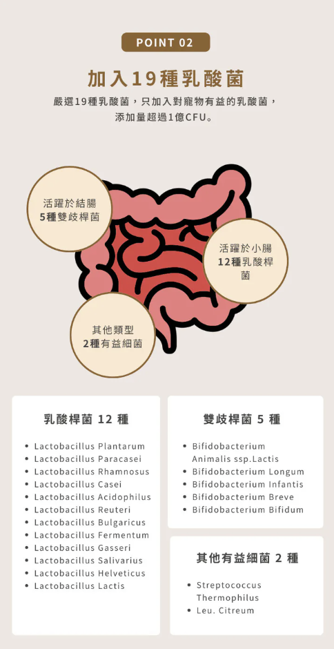 ■ Carefully selected 19 types of lactic acid bacteria, only lactic acid bacteria that are beneficial to pets are added